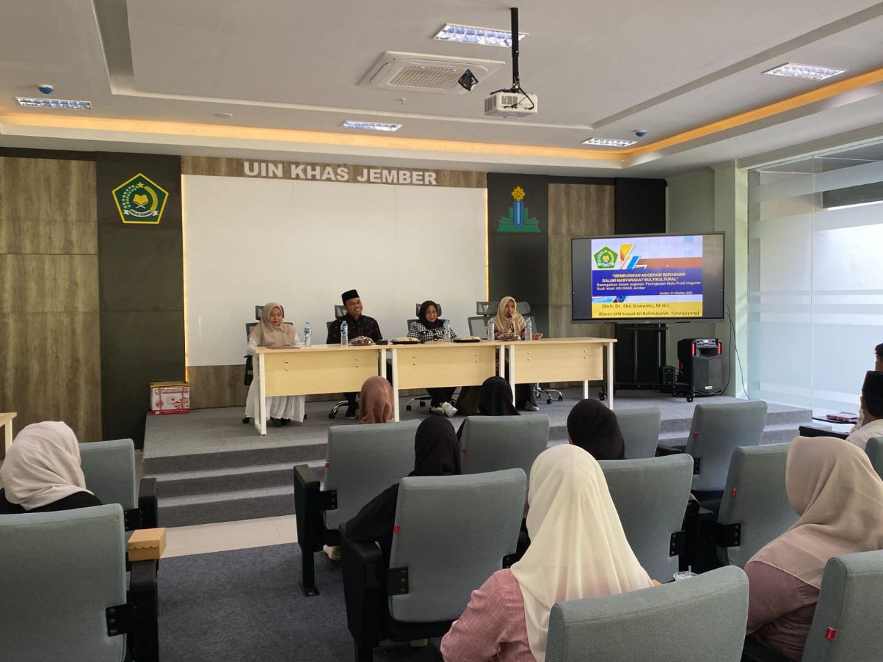 Kegiatan tersebut diselenggarakan di BEC UIN KHAS Jember dalam rangka memperkuat tata kelola akademik dan meningkatkan kualitas keilmuan program studi. Diskusi berlangsung hangat dengan mengangkat tema “Membumikan Moderasi Beragama dalam Masyarakat Multikultural.”